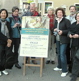 Oktober 2005 Rom: Allein die Namen der Kirchen, in denen wir probten und sangen, sind ein Stück Musik: "San Salvatore in Lauro", "San Paolo entre le Mura" und natürlich "Sankt Peter". Weiterfahrt nach Assisi, dem musikalischen Höhepunkt unserer Reise: Konzert in der - nach dem schweren Erdbeben - wiederhergestellten "Basilica di San Francesco". Die Fresken, die Akustik und der gefüllte Raum mit begeisterten Zuhörern sind bleibende Erinnerungen. Vivaldi und Respighi erklangen wie aus einer anderen Welt.